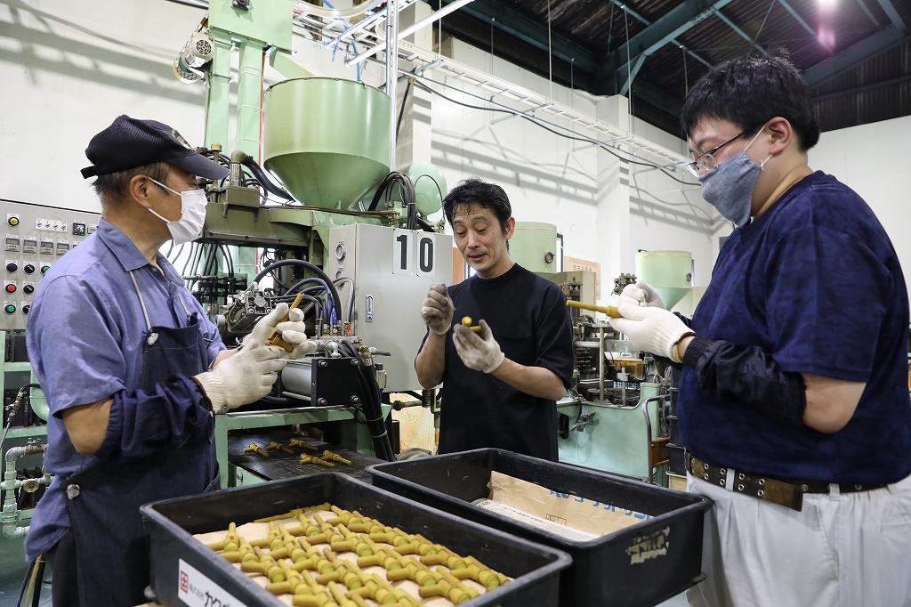 水道関連製品のバリ取り、箱詰め